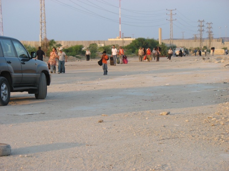 Vid tretiden började vi bryta upp för att hinna komma ut innan israelerna stänger Eretz för kvällen. Vad jag inte visste var att det kommit nya order om att man måste anmäla sig till Eretz ett par timmar innan man vill resa ut igen! Vi hade ju talat om detta när vi reste in och inte kunde jag tänka att man skulle behöva ringa igen! Men som tur var så visste en i sällskapet om denna nya regel och anmälde oss alla på en gång.