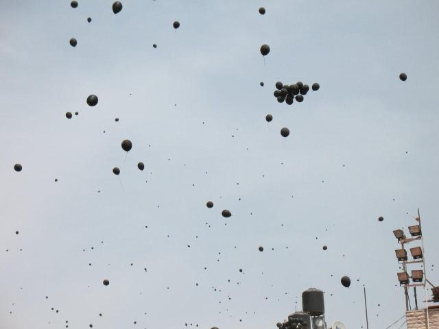 Det var en mäktig syn när alla ballonger flög iväg, hoppas de blåste in mot Israel så att människorna där tänker till och läser barnens meddelande en sorgens dag för alla palestinier.