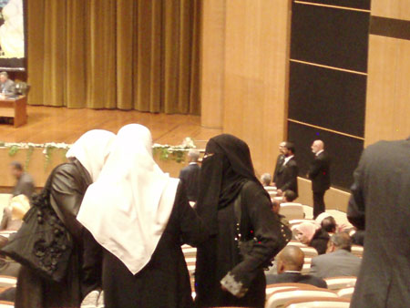 Den manliga dominansen bland talare och deltagare var massiv, dock var det bara en liten del av kvinnorna som bar niqab-slöjor.