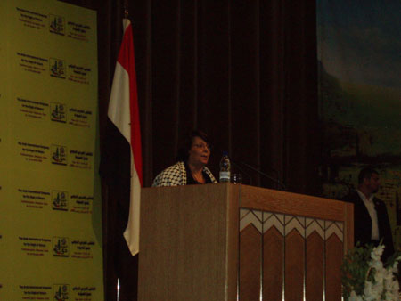 Leila Khaled, legendarisk flygkapare (utan blodsutgjutelse), som var en av ett fåtal företrädare för den palestinska vänstern, manade till motståndskamp mot den israeliska ockupationen.