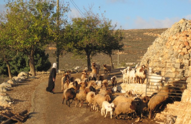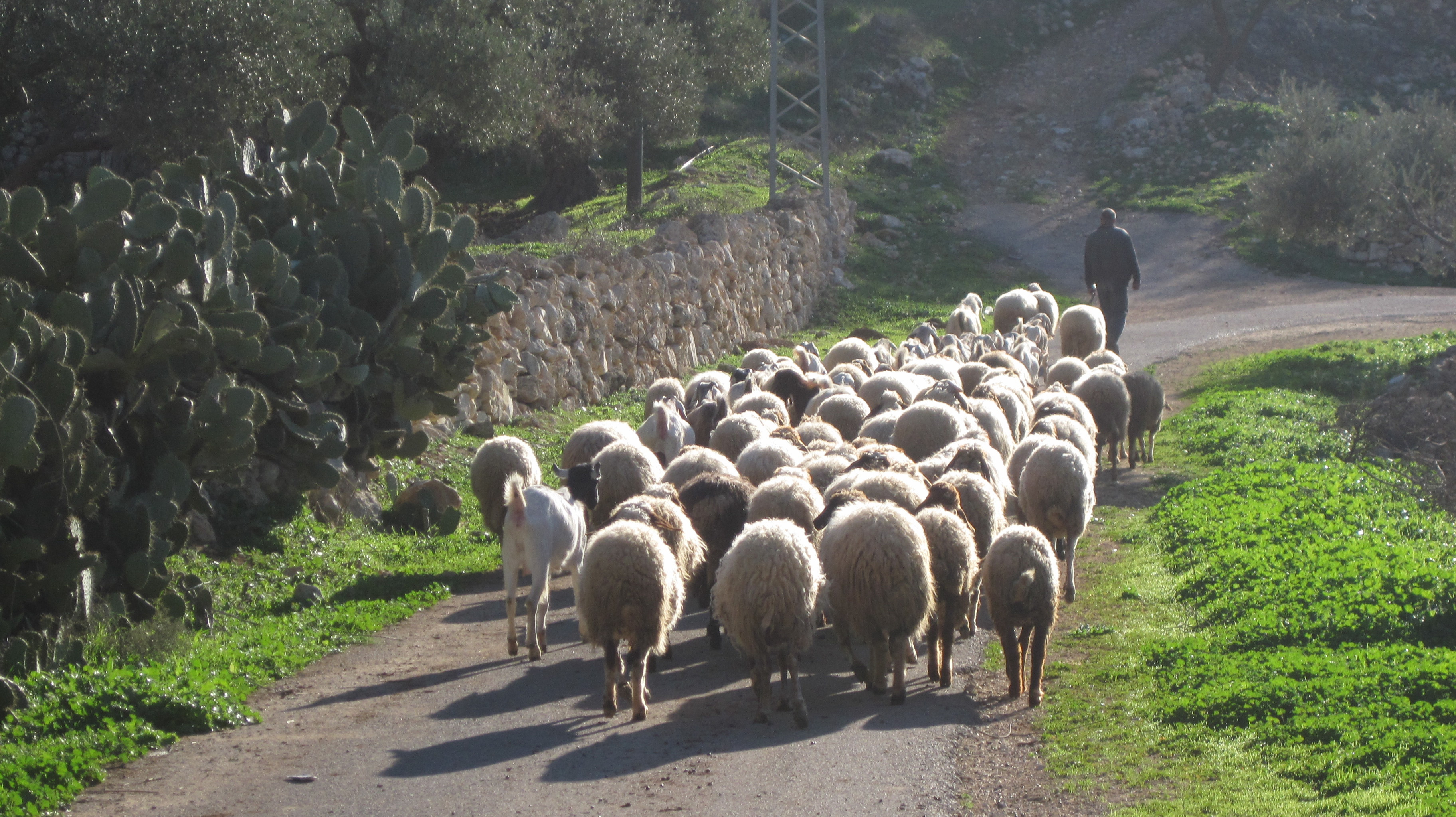 Najihas man Kemal på väg med hjorden mot betesmarker en morgon i Yanoun. Foto: Kerstin Dahlberg