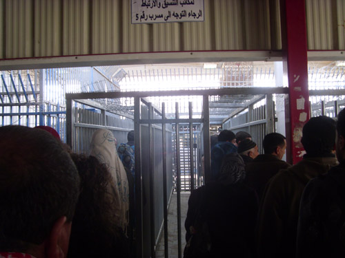 När vi lyft blicken från våra papper, har vi sett hur muren nu slutgiltigt slutförts genom den sista förslutningen i Anata. Vi har också gått genom den israeliska checkpointen i Kalandia. Under 25 min stod vi stilla i de trånga metallfållorna tillsammans med alla andra, män, kvinnor och barn, flera spädbarn. Soldaterna hade väl lunch eller så. Två synbarligen sjuka kvinnor på väg till Makassed sjukhuset på Olivberget fick också vänta. En av dem som knappt kunde stå på benen fick till slut passera genom en sidogrind, men gå var hon tvungen till. Den andra sjuka kvinnan försökte vi alla släppa förbi i kön. Fast när vi var inne i fållan som också hade tak, kunde vi inte röra oss. Detta var mitt på dagen. Man kan bara tänka sig hur det är på morgnar och kvällar.